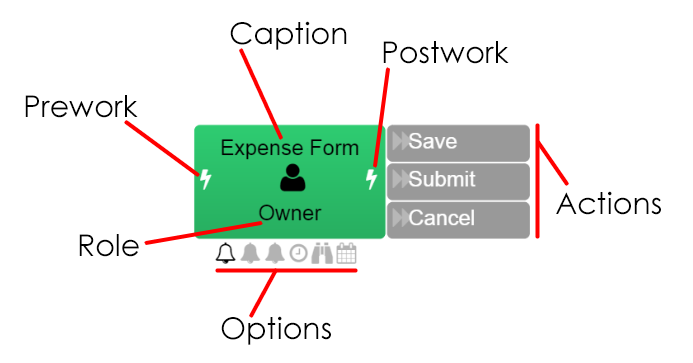 A task defines a step in the process diagram. Tasks can be defined as user tasks or module tasks to execute automated steps in a workflow. Every task has a list of actions to complete the step in a workflow.